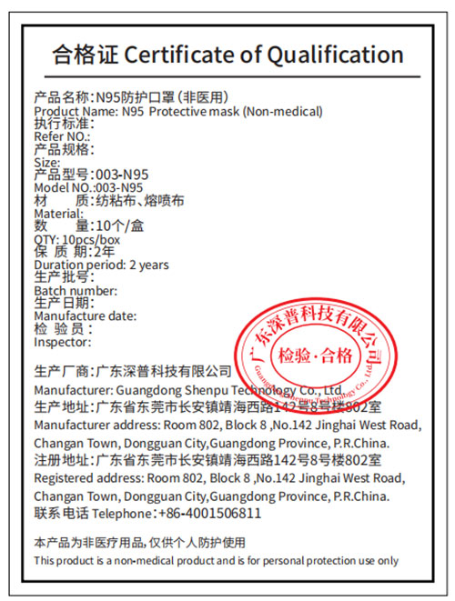 N95 qoruyucu maska¼ˆCup formï¼ ‰ -Sertifikat keyfiyyəti