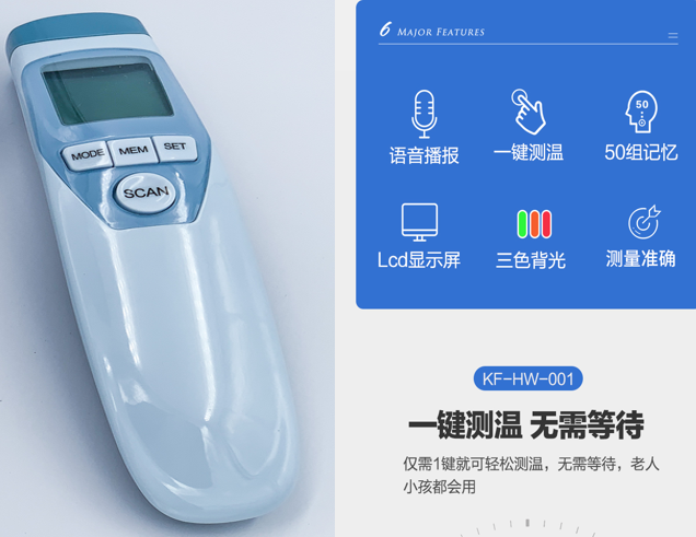 Əsas həyati işarələrdən biri olaraq bədən istiliyi bədənin metabolik vəziyyətini və sağlamlıq vəziyyətini əks etdirə bilər. Bazarda bir çox növə istinad edilərkən ən əlverişli seçim təmasda olmayan aln termometridir. yüksək keyfiyyətli aln termometrini seçmək lazımdır. Məsələn, KIEYYUEL-in KF-HW-001, infraqırmızı sürətli sınaq, bədən istiliyində 0,1 ° C dəyişikliyi hiss edə bilər.